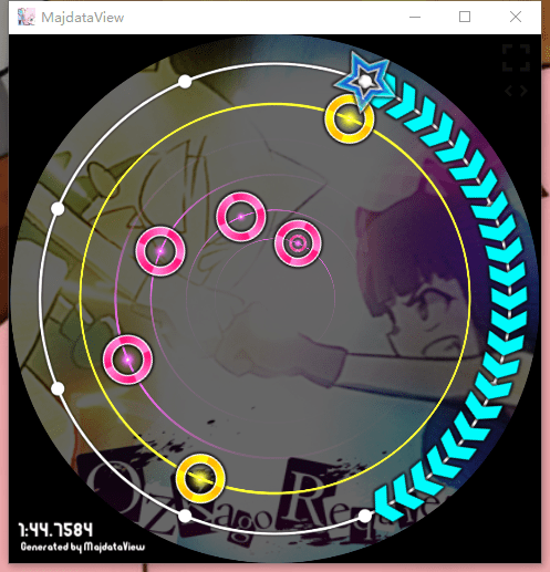 以the EmpErroR[MAS]尾杀的快速交互接大宇宙为例,你可以将这些散点可以全部看作 1/8 或 2/7 的双押。由于内屏延迟的存在,内屏击打的判定会稍晚一些,使得实际上的判定更接近交互一些,从而进一步提高黄率就个人测试而言,这种打法可以取得几乎全黄的成绩。