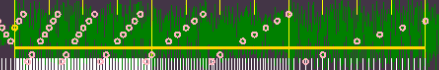 舞萌中扫键通常是匀速的。即使在变速扫键中,每一次变速内部扫键也都是匀速的,舞萌中几乎不会出现“每个音符都变一些速”的扫键(不如说,音乐中往往也不会这么写)。如下图所示,即使在Credits[MAS]尾杀的减速圈这种“看似不那么匀称”的例子中,音符的变速也有鲜明的规律可循,它们以若干个为一组进行一次减速。